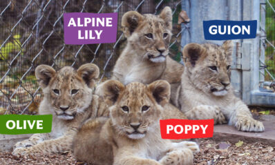Tras varias semanas de anticipación, ¡nos complace anunciar que nuestros cachorros de león africano ya tienen nombre! Únanse a nosotros para celebrar al cachorro macho, Guion, y a nuestras leonas, Alpine Lily, Olive y Poppy.