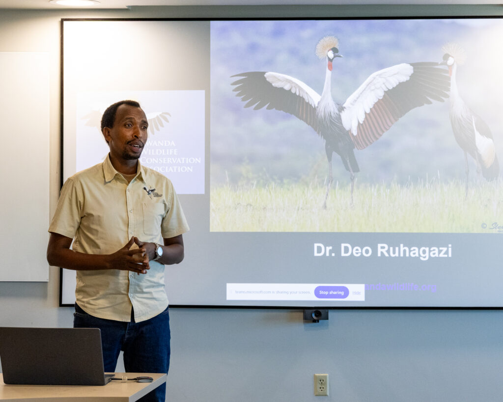 - En Ruanda, we are collaborating with Rwanda Wildlife Conservation Association to plan and design deterrent experiments to prevent grey crowned cranes from foraging in farmers’ crops. These experiments will be launching in the fall and helping protect these Endangered birds while improving food security for families.