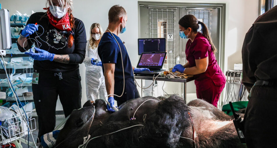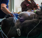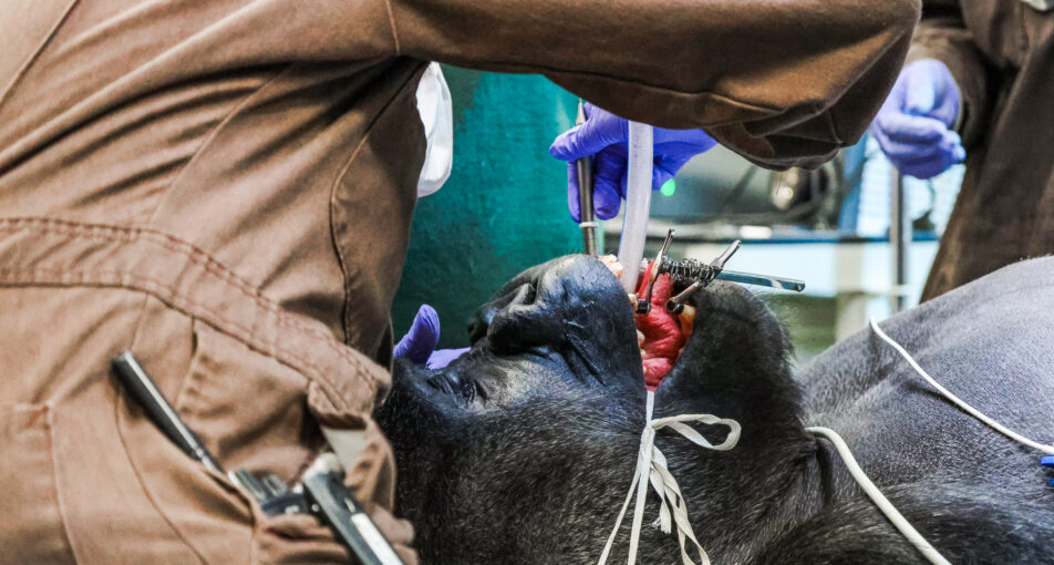 On December 10, our two Western lowland gorilla boys, Gunther and Kal, visited the Helen and Arthur E. Johnson Animal Hospital for routine preventative health exams. Following sedation, each gorilla was transported individually from their home in Primate Panorama to the Animal Hospital, where veterinary teams from Denver Zoo Conservation Alliance and partner organizations were ready to begin their work.