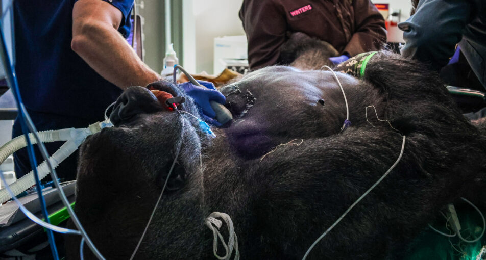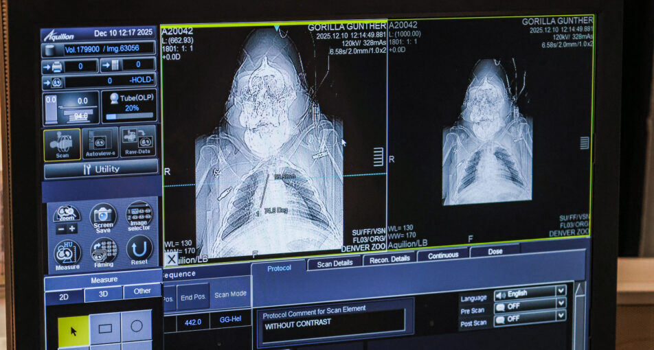 Each exam included an extensive health evaluation, featuring a full cardiac workup, dental examinations, gastrointestinal endoscopies, full-body CT scans, and comprehensive lab work. We were especially excited to collaborate with partners from the Great Ape Heart Project, as research shows that gorillas over the age of 30 are at increased risk for cardiac disease. While Gunther (19) and Kal (20) are still young, preventative care is the best way to protect their long-term health.